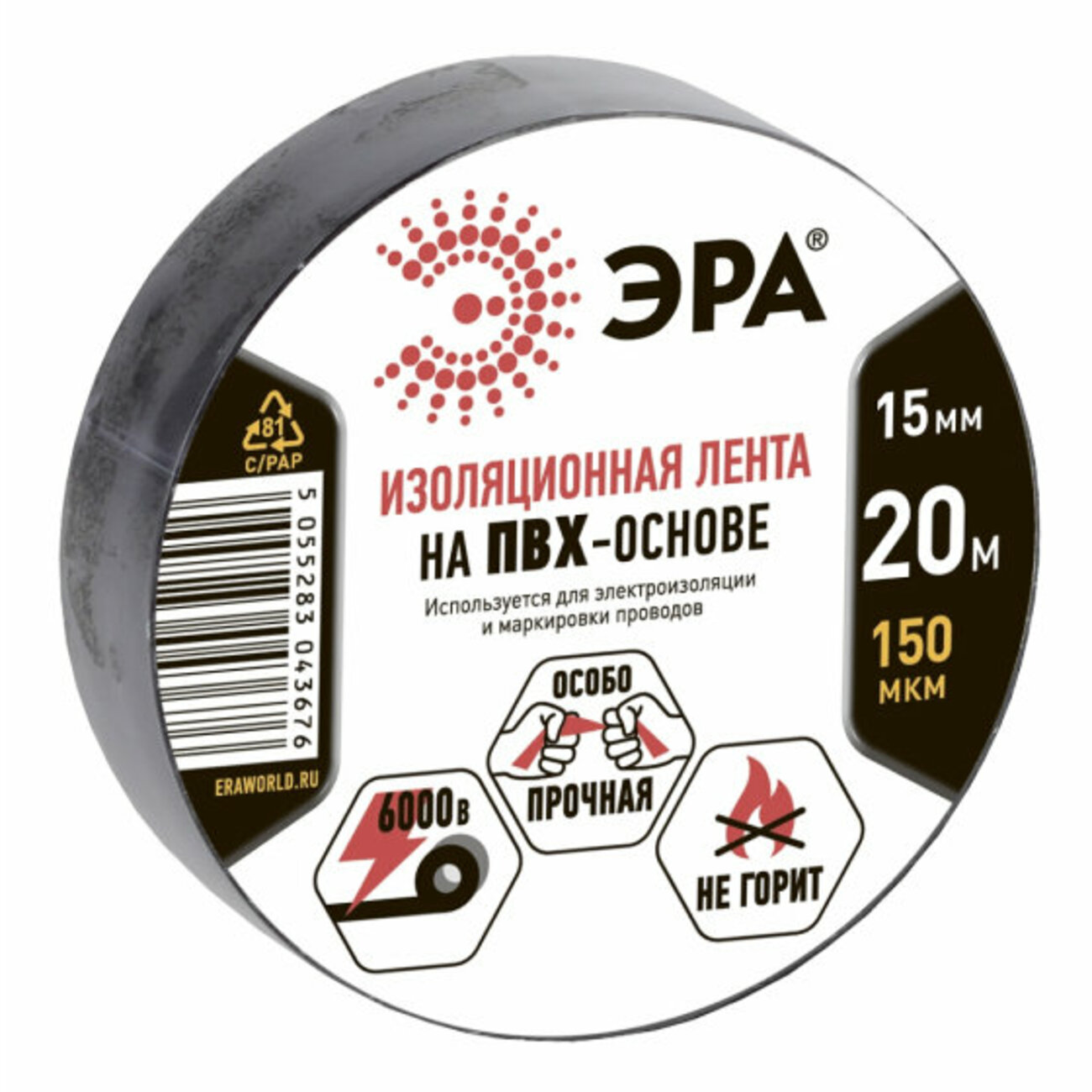 Изолента ЭРА ПВХ 15/20 черная 0.15х15 мм, 20 м