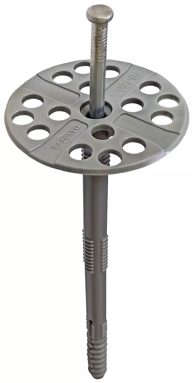 Дюбель предназначен для крепления к стенам различных теплоизоляционных материалов - плит из минеральной и каменной ваты, пенополистирола, пенопласта и других. Такой вид крепежа подходит для оснований из ячеистого бетона, монолитного бетона и кирпича.