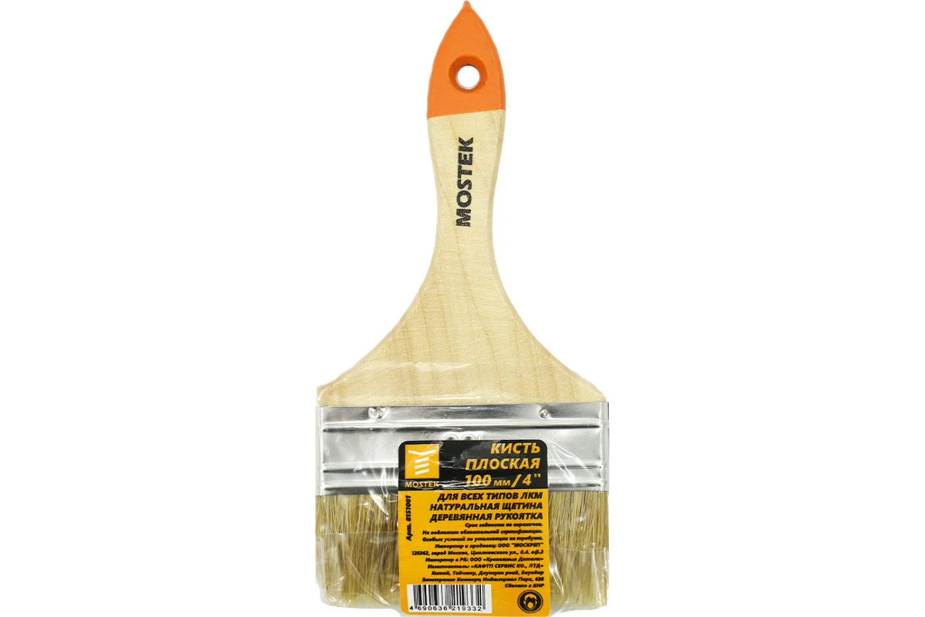Плоская кисть с натуральной щетиной используется для проведения различных малярных работ. Натуральная щетина не разрушается под воздействием агрессивных веществ, поэтому кисть можно применять для работ со всеми типами лакокрасочных материалов.