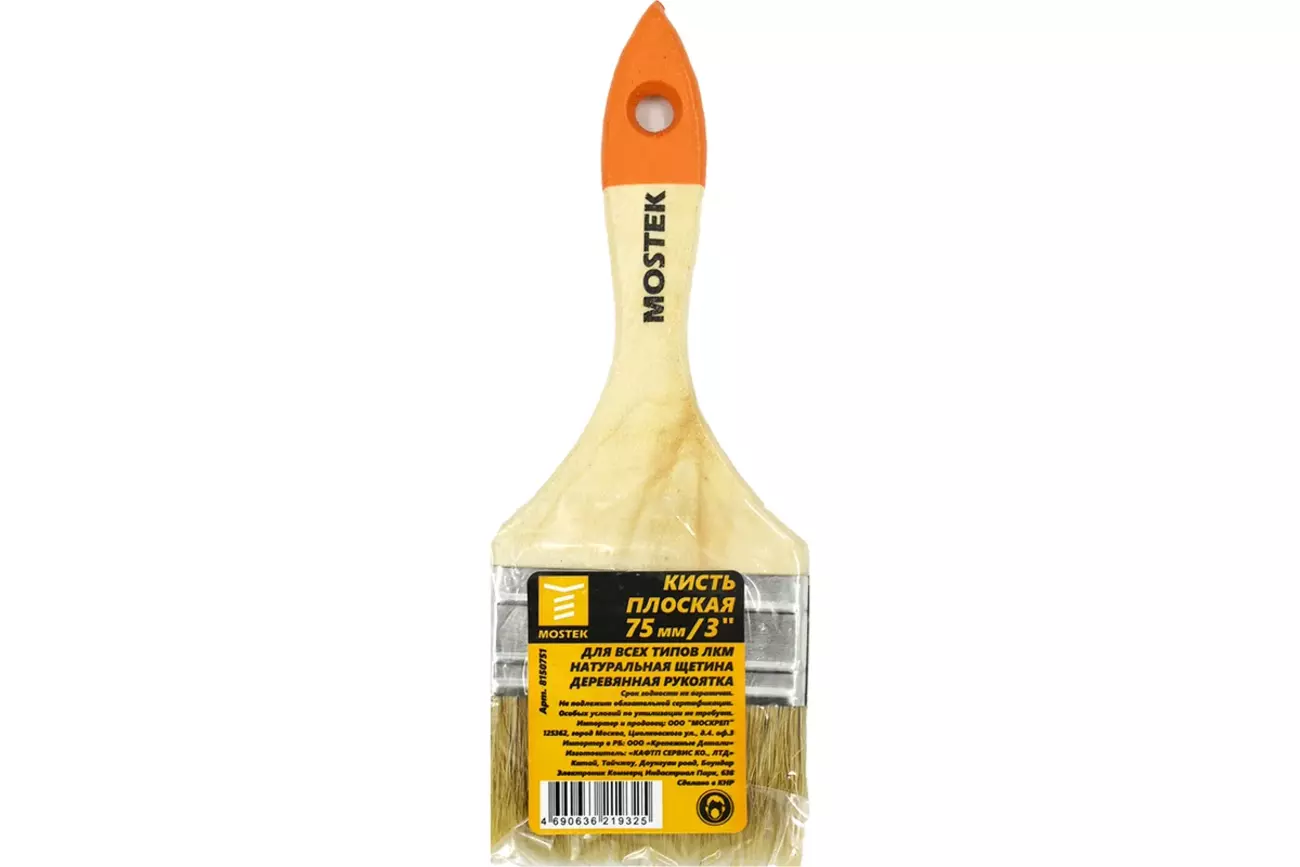 Кисть плоская MosTek 75 мм /3" (натуральная щетина) деревяная рукоятка