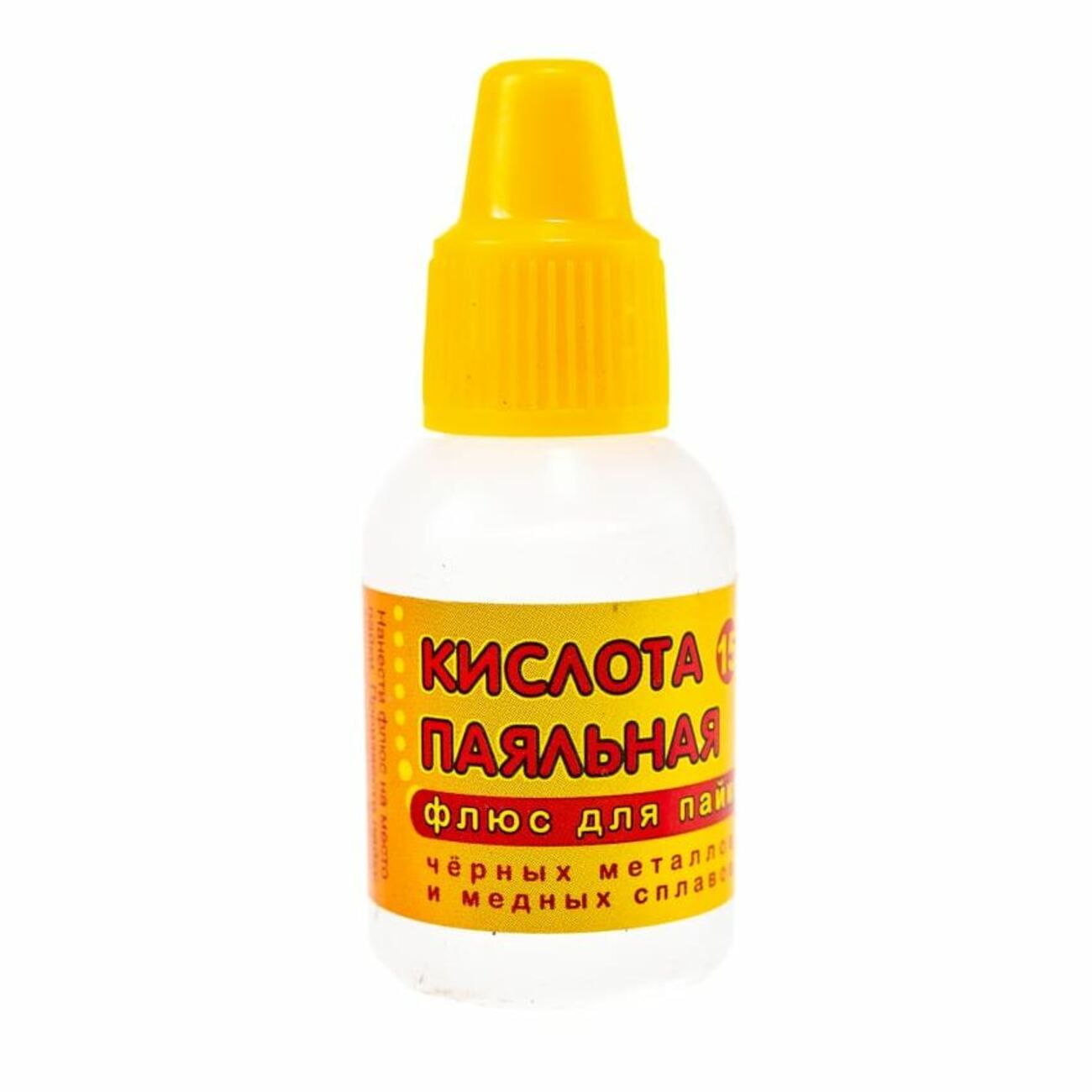 Кислота паяльная - высокоактивный флюс для пайки. Применяется для пайки углеродистых и низколегированных сталей, меди, никеля и их сплавов. Обладает высочайшими флюсующими свойствами. Недопустимо применение флюса для пайки SMD элементов. Требует удаления остатков флюса после пайки. Отмывка: 5% водный раствор кальцинированной соды.