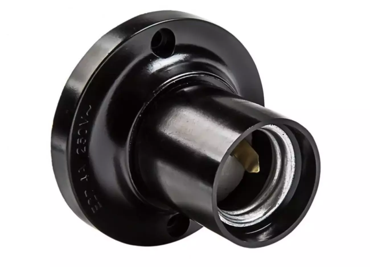 Потолочный жаропрочный патрон с платформой для фиксации на плоских поверхностях применяется для потолочной установки с использованием шайбы-прокладки из фанеры или негорючего пластика. Подходит к лампам с диаметром цоколя 27 мм