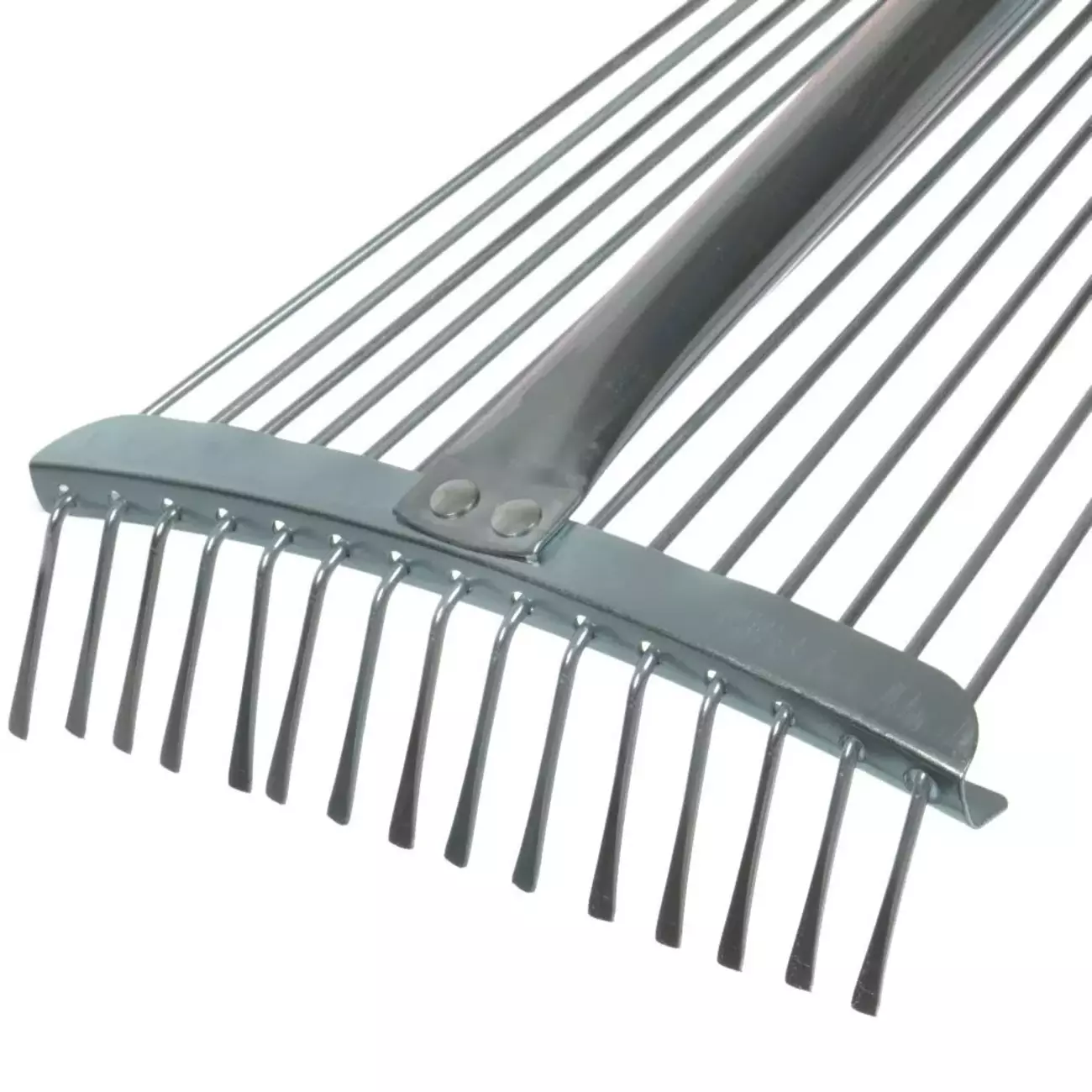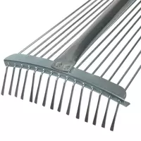 Основная задача веерных грабель – уборка скошенной травы, упавших листьев и прочего садового мусора, а также аэрация и «причесывание» газонов. Зубья хорошо пружинят на неровных поверхностях, не гнутся и не ломаются. Пластины крепятся специальным фиксирующим сектором и имеют центральный узел крепления из прочного и плотного пластика, где пластины соединяются общей заклепкой, что обеспечивает долговечность конструкции.