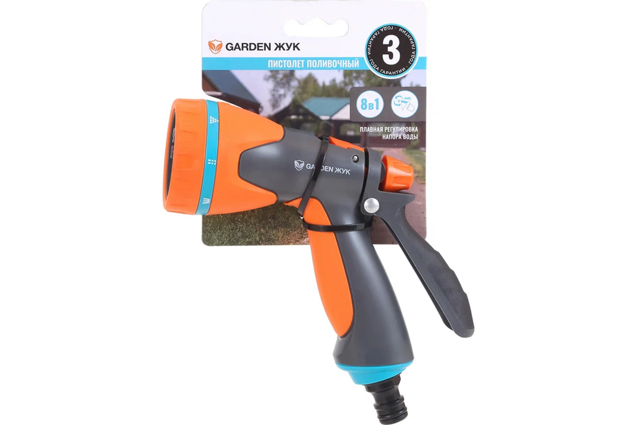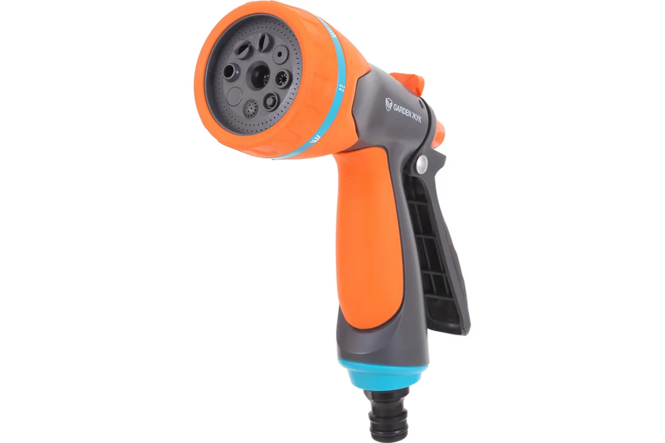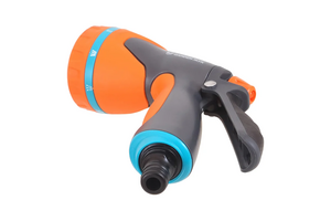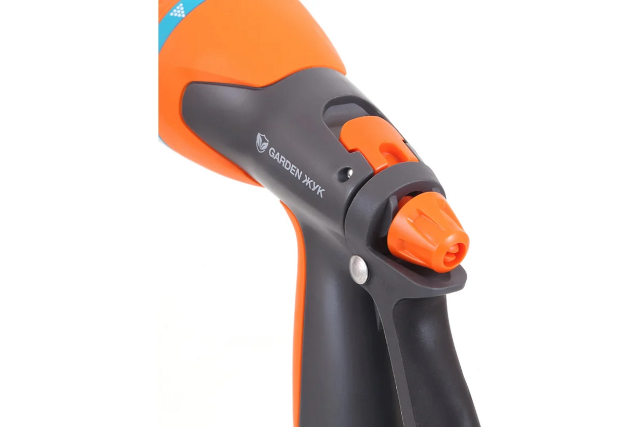 Плавная регулировка потока воды. Фильтр грубой очистки с возможностью промывки. Двухкомпонентный пластик SOFT TOUCH обеспечивает удобство работы и контроль пистолета. Установка фиксатора осуществляется одним движением. 8 режимов работы: мягкая струя, конус, аэрирование, жесткая струя, слабая струя, душ, вертикальный полив, плоская струя - позволят всегда подобрать максимально подходящий именно для ваших целей.
