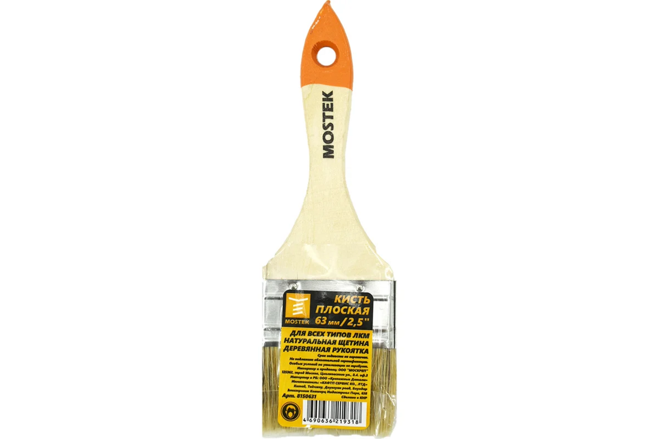 Плоская кисть с натуральной щетиной используется для проведения различных малярных работ. Натуральная щетина не разрушается под воздействием агрессивных веществ, поэтому кисть можно применять для работ со всеми типами лакокрасочных материалов.