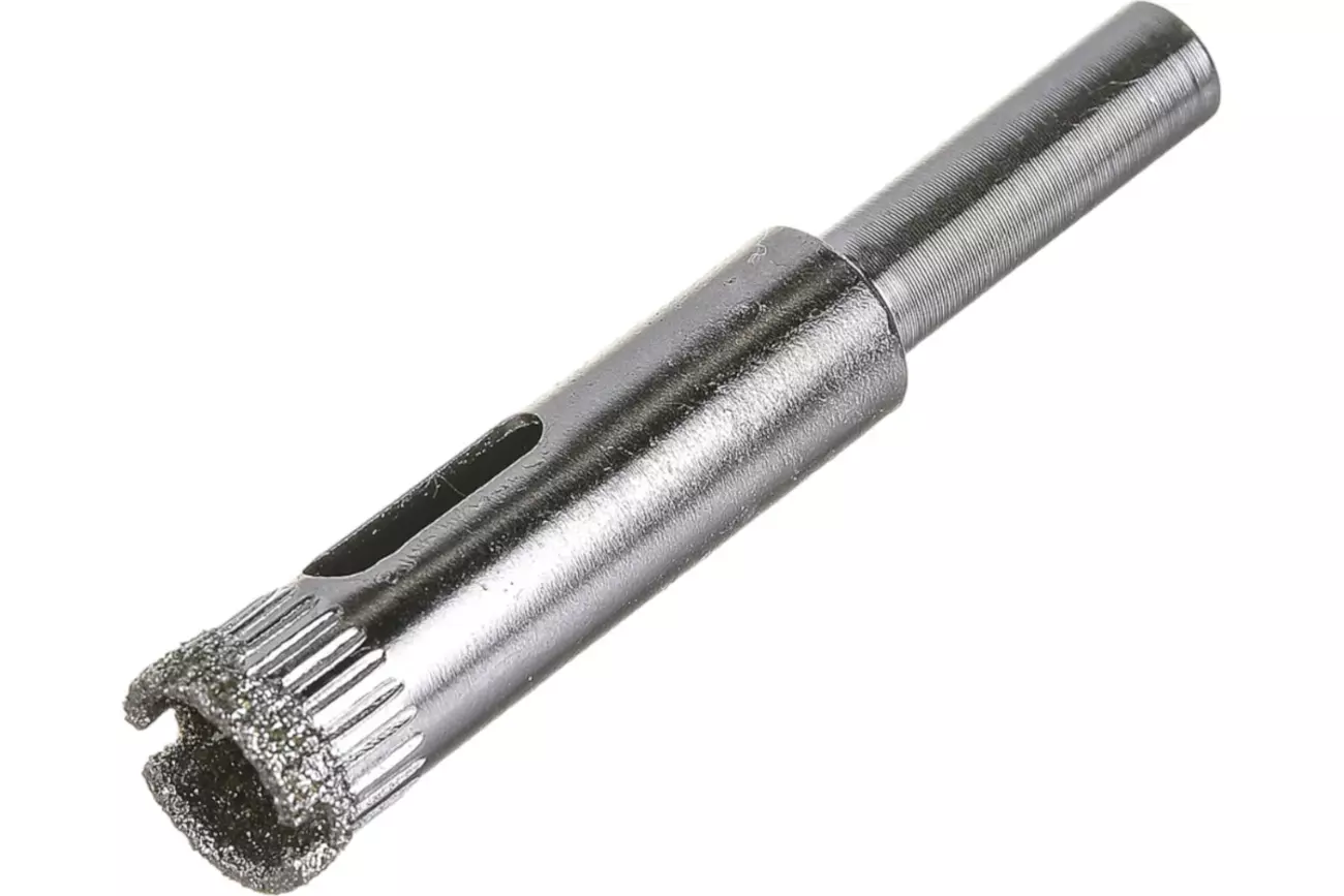 Коронка алмазная по стеклу и кафелю позволяет быстро и без больших усилий сделать ровные отверстия с гладкими кромками. Во время эксплуатации оснастки необходимо применять воду для охлаждения, а также для обеспечения безопасности рекомендуется использовать средства индивидуальной защиты.