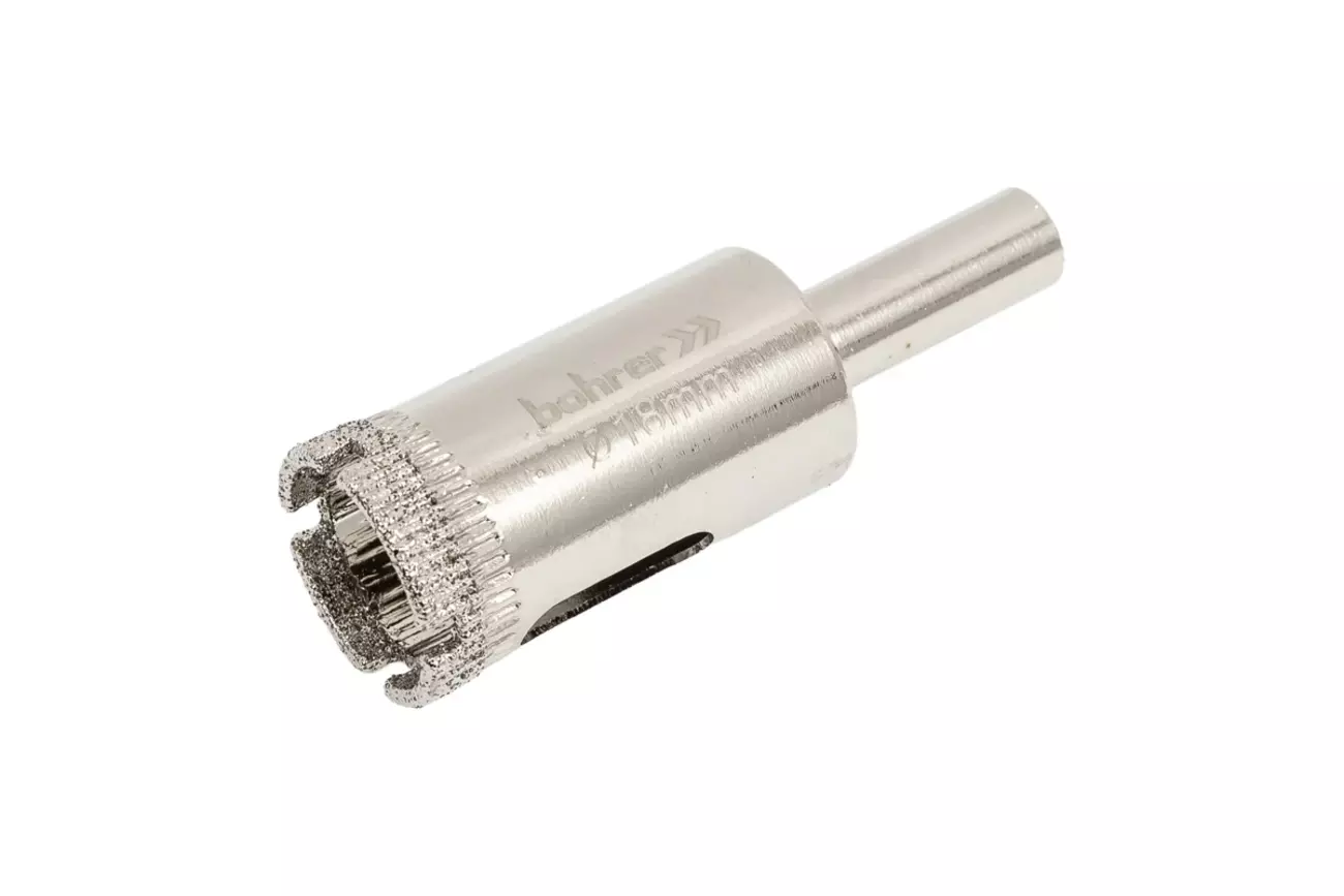Коронка алмазная по стеклу и кафелю помогает быстро и без усилий сделать ровные отверстия с гладкими кромками. Во время эксплуатации оснастки необходимо применять воду для охлаждения, а также для обеспечения безопасности рекомендуется использовать средства индивидуальной защиты.