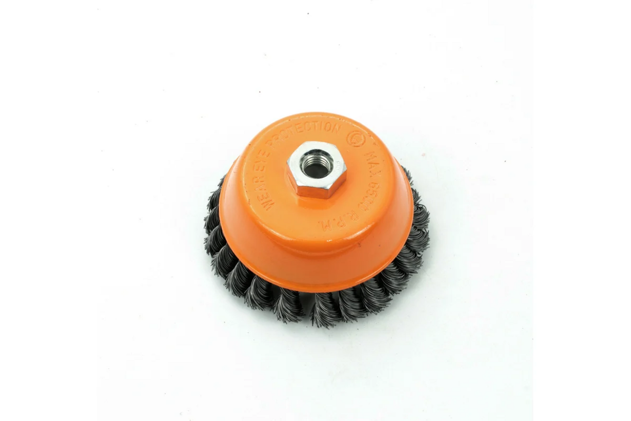 Кордщётка используется для шлифовальных и обдирочных работ в угловых шлифовальных машинах. Оснастка крепится к инструменту при помощи гайки М14.