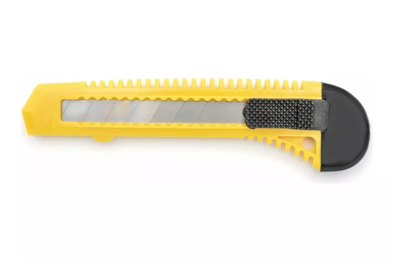 Нож — это отличный помощник как в строительстве и ремонте, так и в быту. Инструмент поможет быстро и ровно раскроить обои и напольные покрытия, вырезать различные узоры и многое другое. Эргономичная рукоятка удобно лежит в руке во время работы. Модель имеет прочный корпус. Лезвие полностью задвигается внутрь, что гарантирует безопасное хранение. Если режущая поверхность затупилась, ее легко можете его поменять, отломив старый кончик по специально расчерченной линии с помощью съёмной задней части.