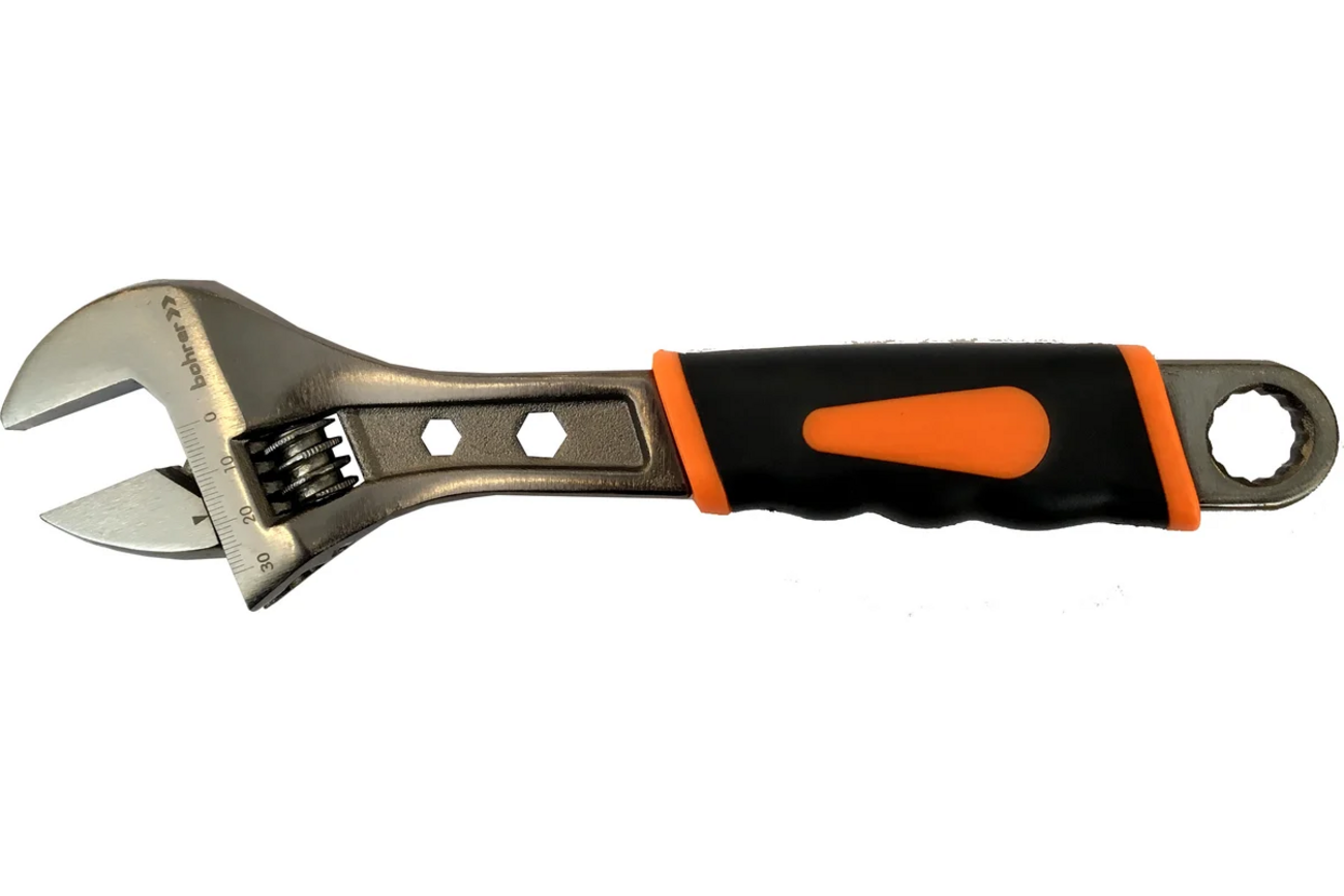 Разводной ключ представляет собой качественный ручной инструмент, предназначенный для отвинчивания и завинчивания гаек, болтов, вентилей и крепежа. Это универсальный инструмент, который может заменить несколько гаечных ключей за счет возможности регулирования раскрытия губок. Инструмент выполнен из высококачественной хромованадиевой стали, что обеспечивает прочность, надежность и долгий срок службы. Никелевое покрытие рабочей части инструмента предотвращает образование коррозии. Двухкомпонентная рукоять комфортна при работе и не скользит в руках.