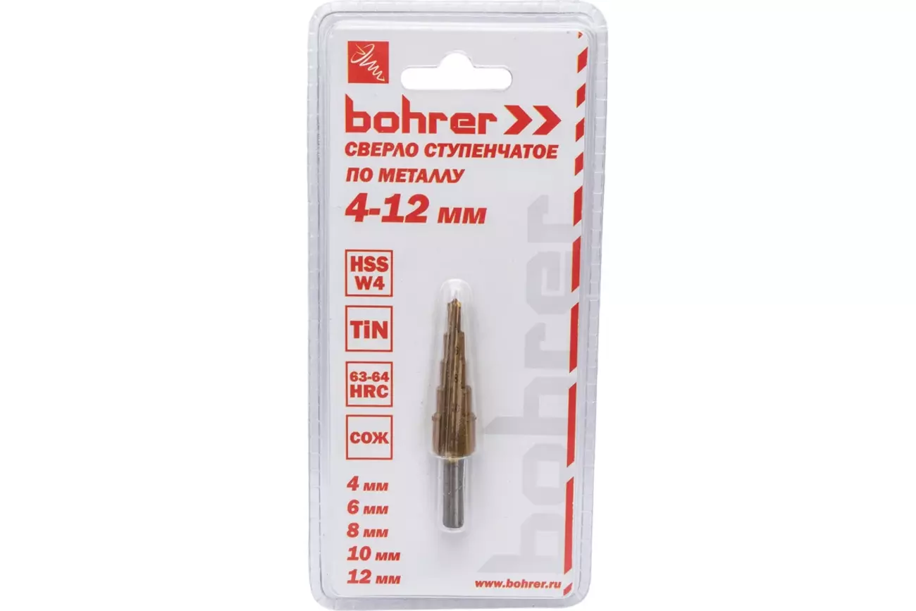 Сверло Bohrer 4–12 мм HSS W4 TiN — универсальный и высокопрочный инструмент для создания отверстий различных диаметров в металле и пластике. Благодаря качественной быстрорежущей стали W4 и титановому нитридному покрытию, оно обеспечивает: