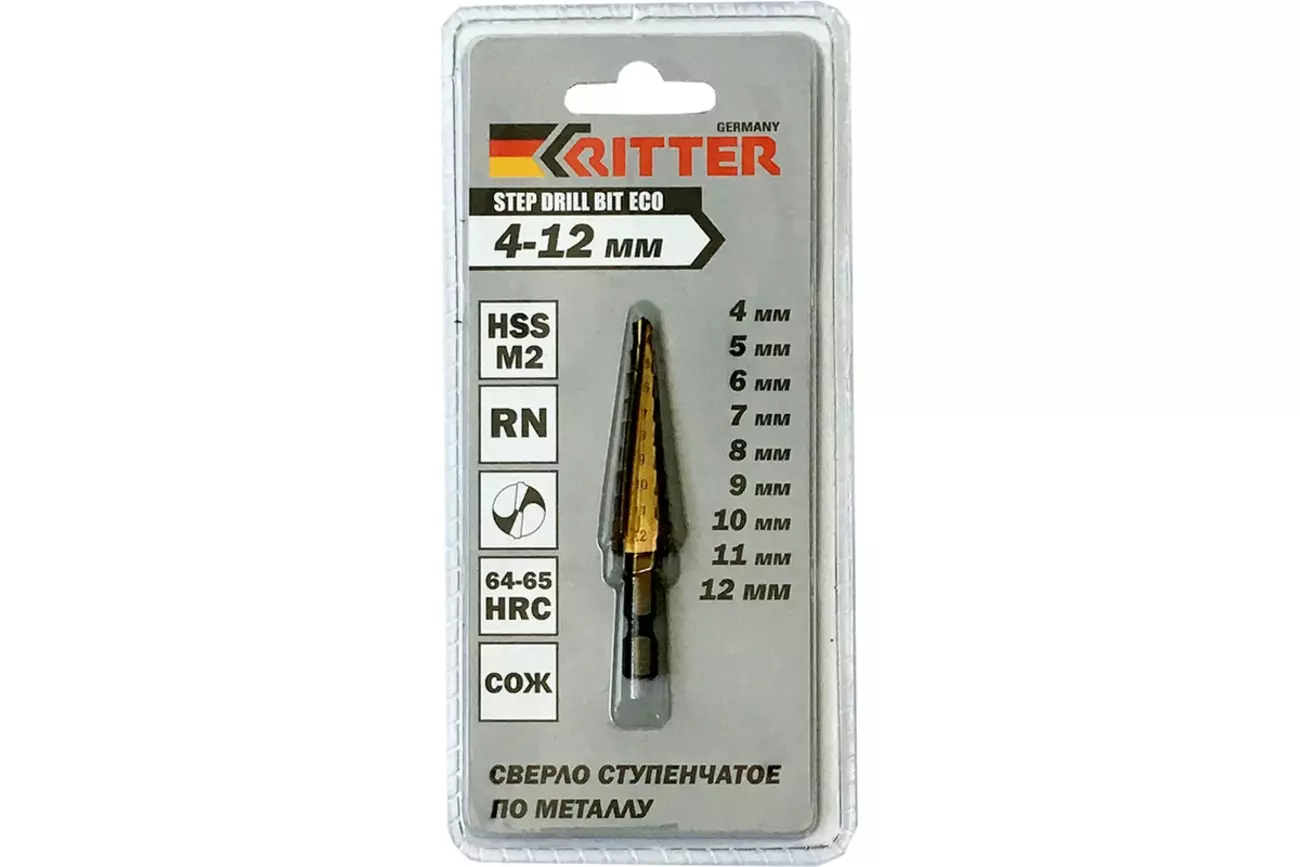 Ступенчатое сверло Ritter 4–12 мм изготовлено из высококачественной быстрорежущей стали HSS (M2) и предназначено для сверления отверстий в металле, нержавеющей стали, алюминии, пластике и тонком листовом материале. Благодаря ступенчатой конструкции одно сверло заменяет несколько, обеспечивая точное и чистое сверление без заусенцев.