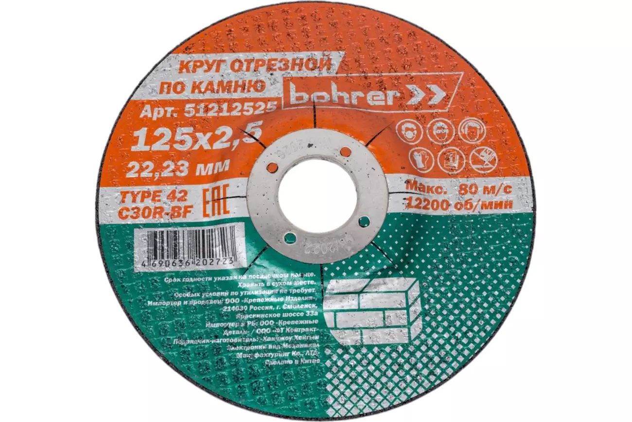 Отрезной круг — надёжный и эффективный инструмент для точной резки натурального и искусственного камня, кирпича, мрамора, песчаника, а также бетонных материалов средней твёрдости. Абразив из карбида кремния C30R-BF обеспечивает продолжительный срок службы и стабильное качество реза.