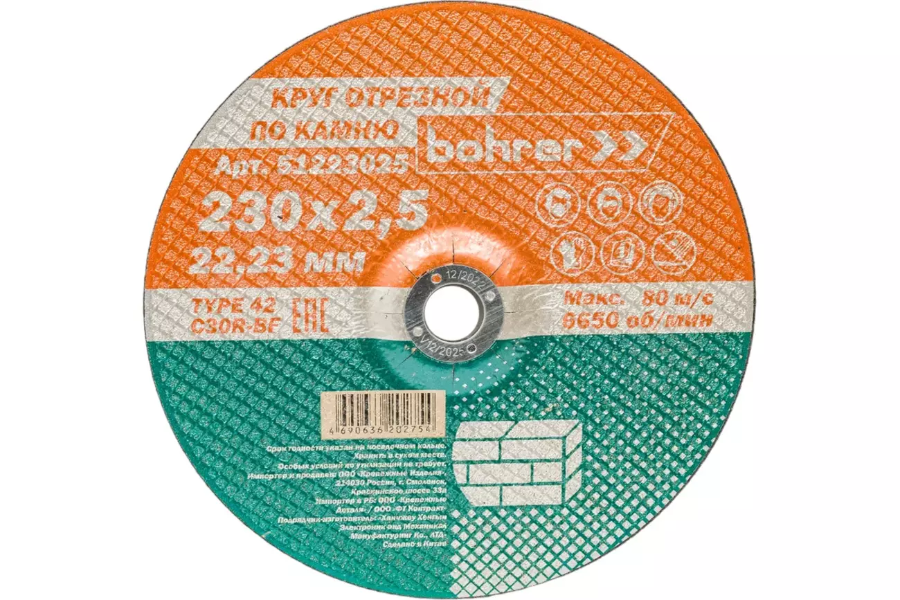 Отрезной диск — это прочный и надёжный инструмент для точной резки твёрдых материалов: натурального и искусственного камня, кирпича, а также бетона. Абразив из карбида кремния (марка C30R-BF) обеспечивает высокую износостойкость, долговечность и чистоту реза. Вогнутая форма T42 облегчает работу под различными углами, снижая риск заклинивания и обеспечивая управляемость при резке. Тонкая толщина диска (2.5 мм) позволяет максимально точно резать с минимальной потерей материала.
