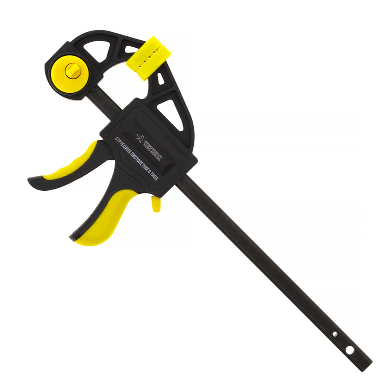 Может использоваться в качестве скобы, стойки, хорошо работает в тандеме с тиски и т.п. Для зажима разного рода крепления. Пригодится как для мелких строительных и ремонтных работ, так и для профессионального применения.