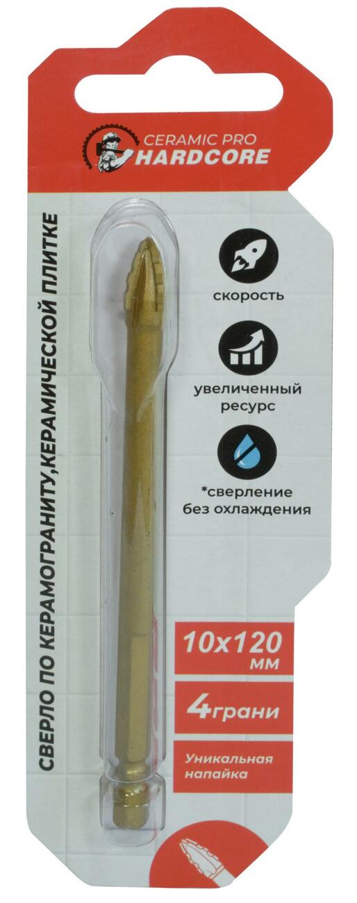 Сверло по керамограниту и керамической плитке имеет высокую твердость и прочность. Сверление нужно производить на невысоких оборотах дрели, а так же обеспечивать постоянное охлаждение сверла и места сверления. Съемная оснастка для работы со стационарными сверлильными станками или с дрелями.4 грани позволяют делать более чистое отверстие. Отличается высоким ресурсом.