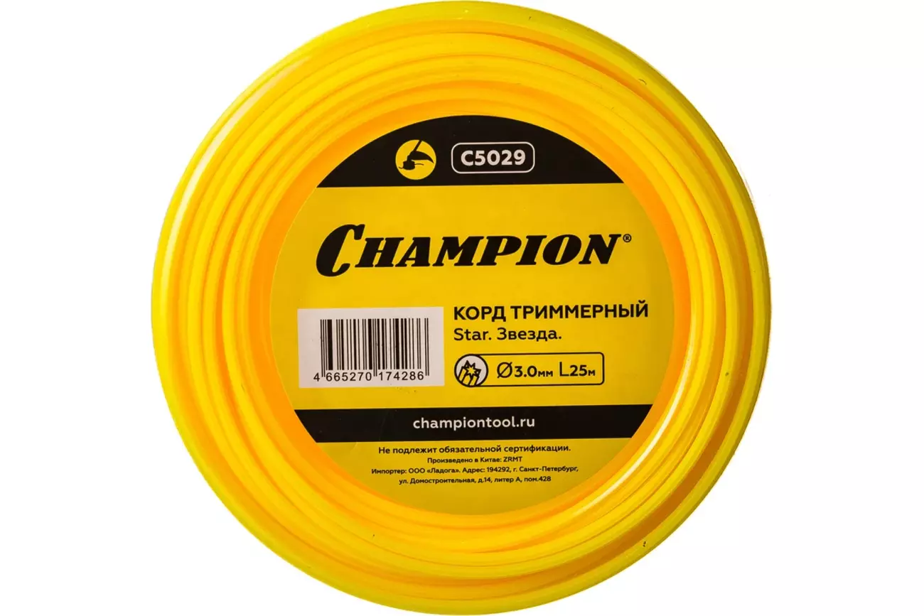 Леска для бензокосы 3.0 мм, 25 м звезда CHAMPION