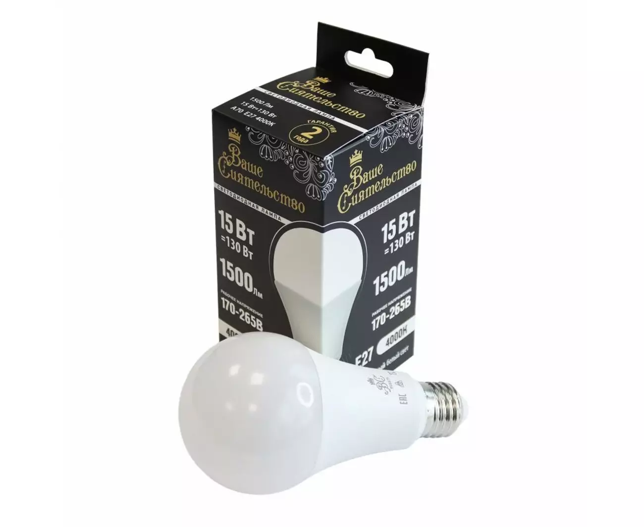 Лампа светодиодная ВАШЕ СИЯТЕЛЬСТВО ЛОН A70 E27 15W (1500lm) 4000K 4K матовая Лампа светодиодная ВАШЕ СИЯТЕЛЬСТВО ЛОН A70 E27 15W (1500lm) 4000K 4K матовая