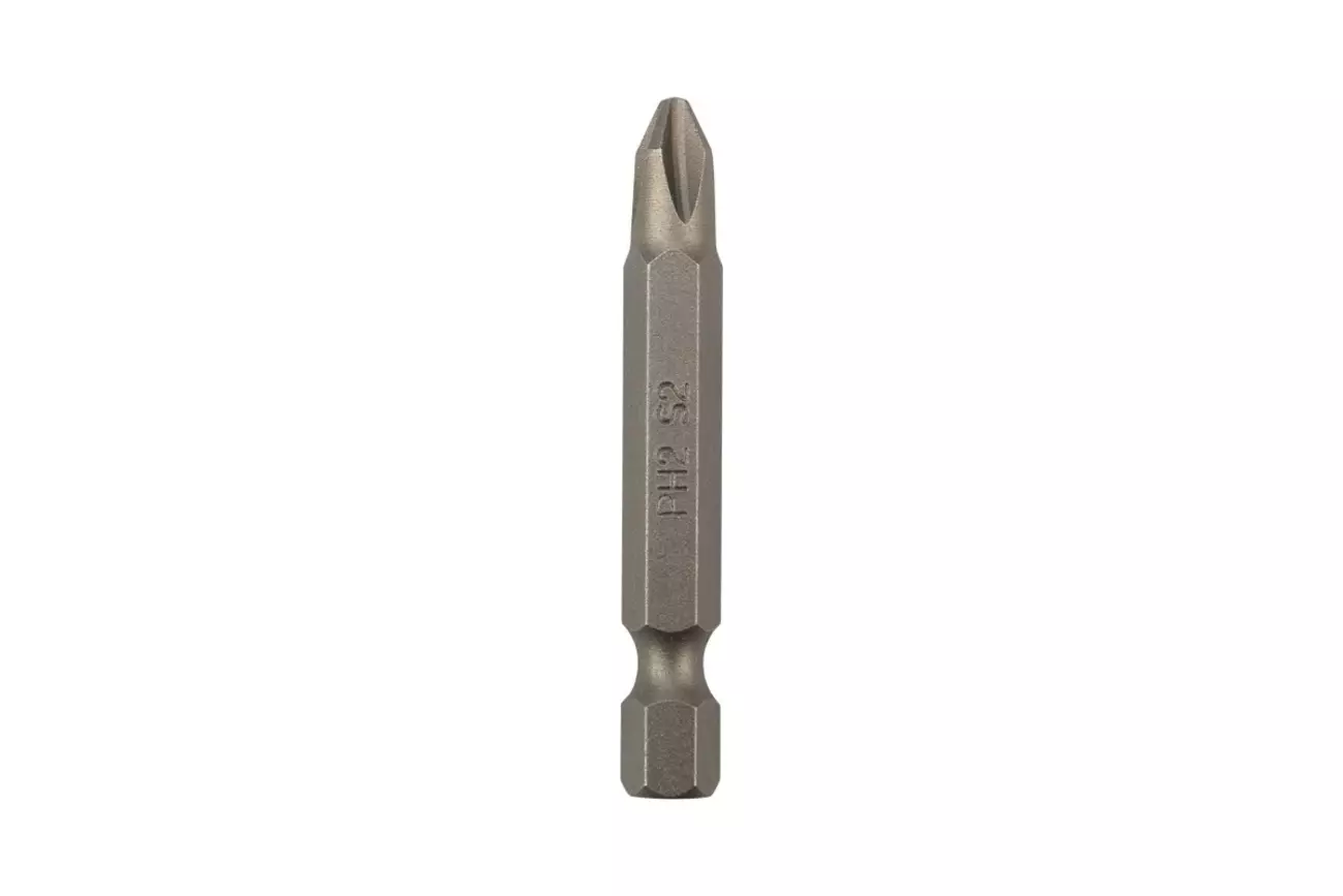 Бита PH2 служит сменной насадкой для шуруповёрта или отвёртки-адаптера при работе с крепежами Phillips. Она выполнена из легированной высокопрочной стали S2, что обеспечивает устойчивость к изломам и деформации в наиболее нагруженных точках касания. Размер наконечника PH2 подходит для работы со шлицами с резьбовым диаметром от 3,1 до 5 мм.