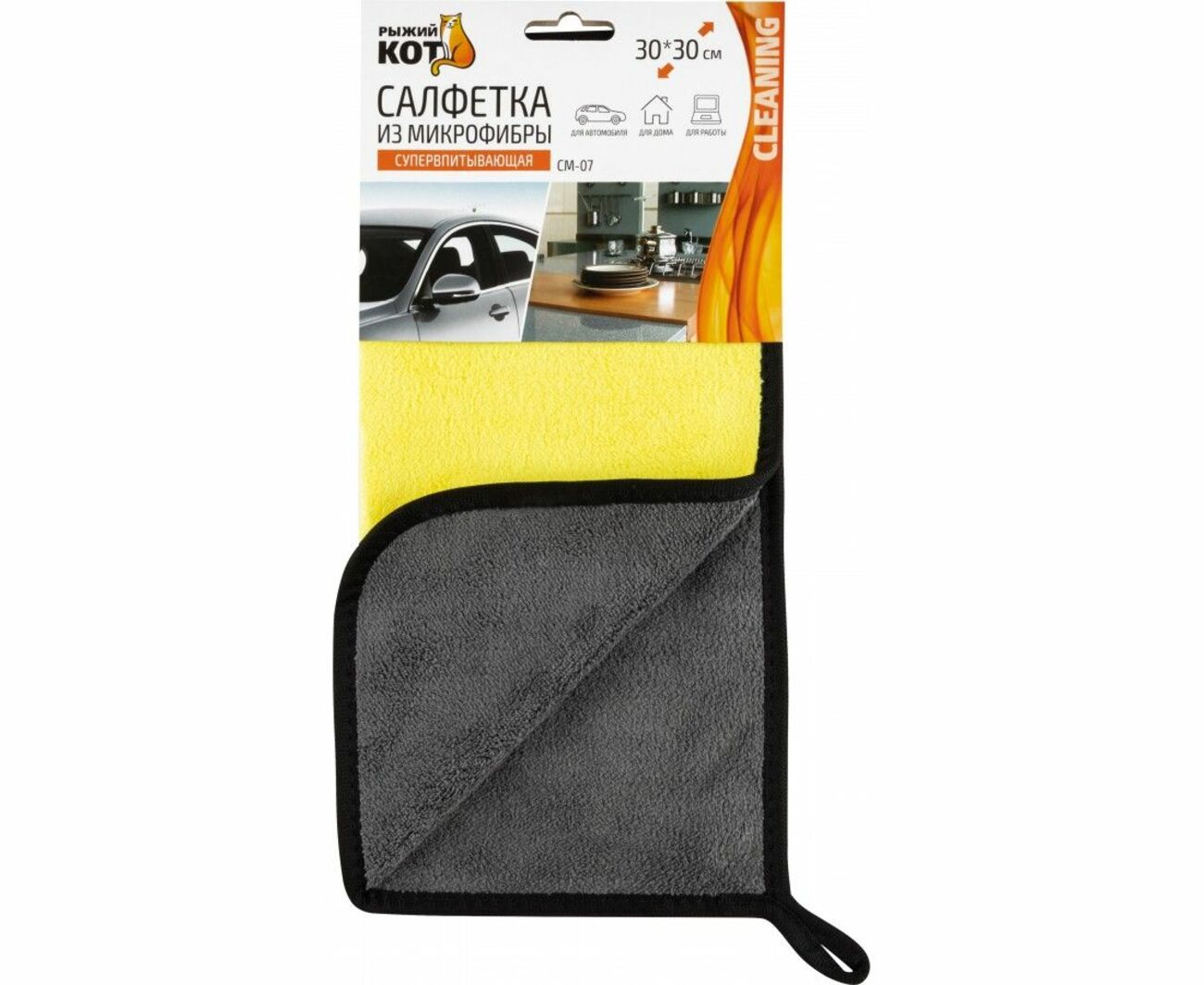 Салфетка из микрофибры 30х30 см, 500 гр/м², супервпитывающая, Рыжий Кот
