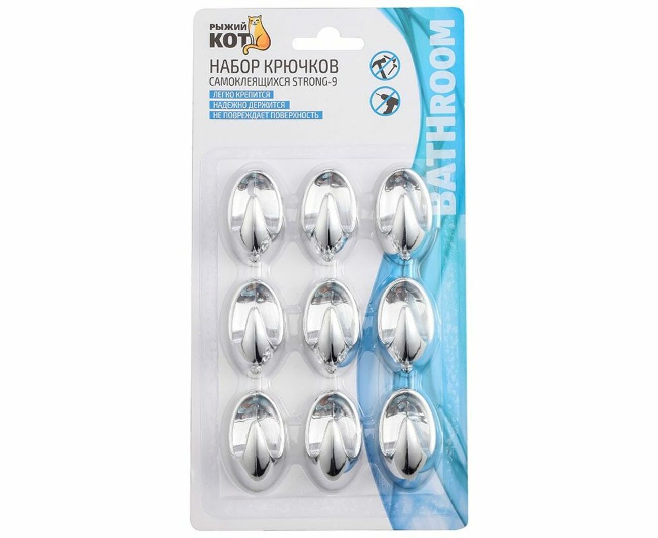 Крючок самоклеющиеся хром STRONG-9 Рыжий кот, набор 9 шт