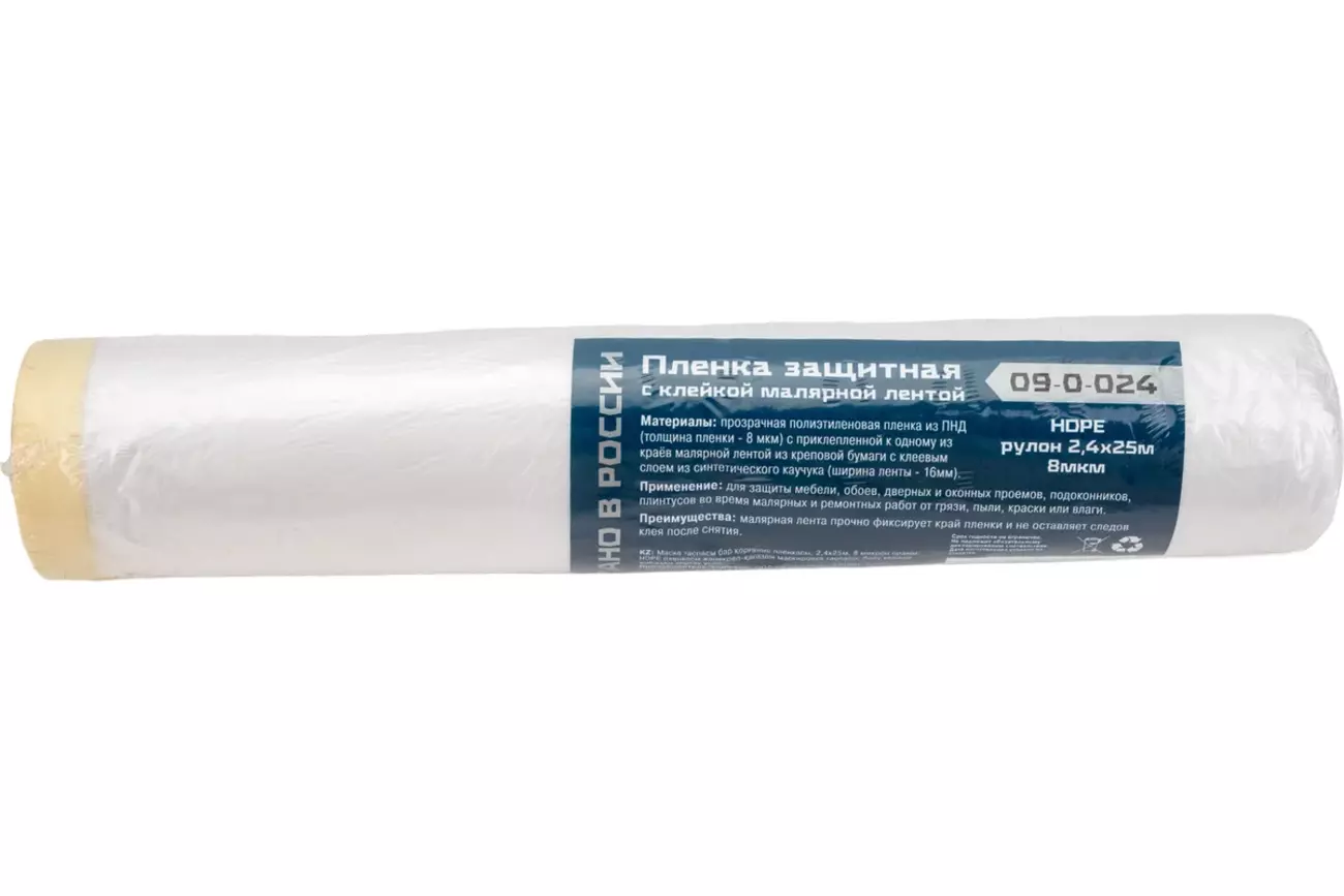 Пленка защитная, с малярной лентой, 9мк, 2.4х25 м (09-0-024)