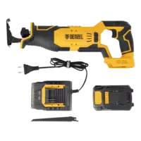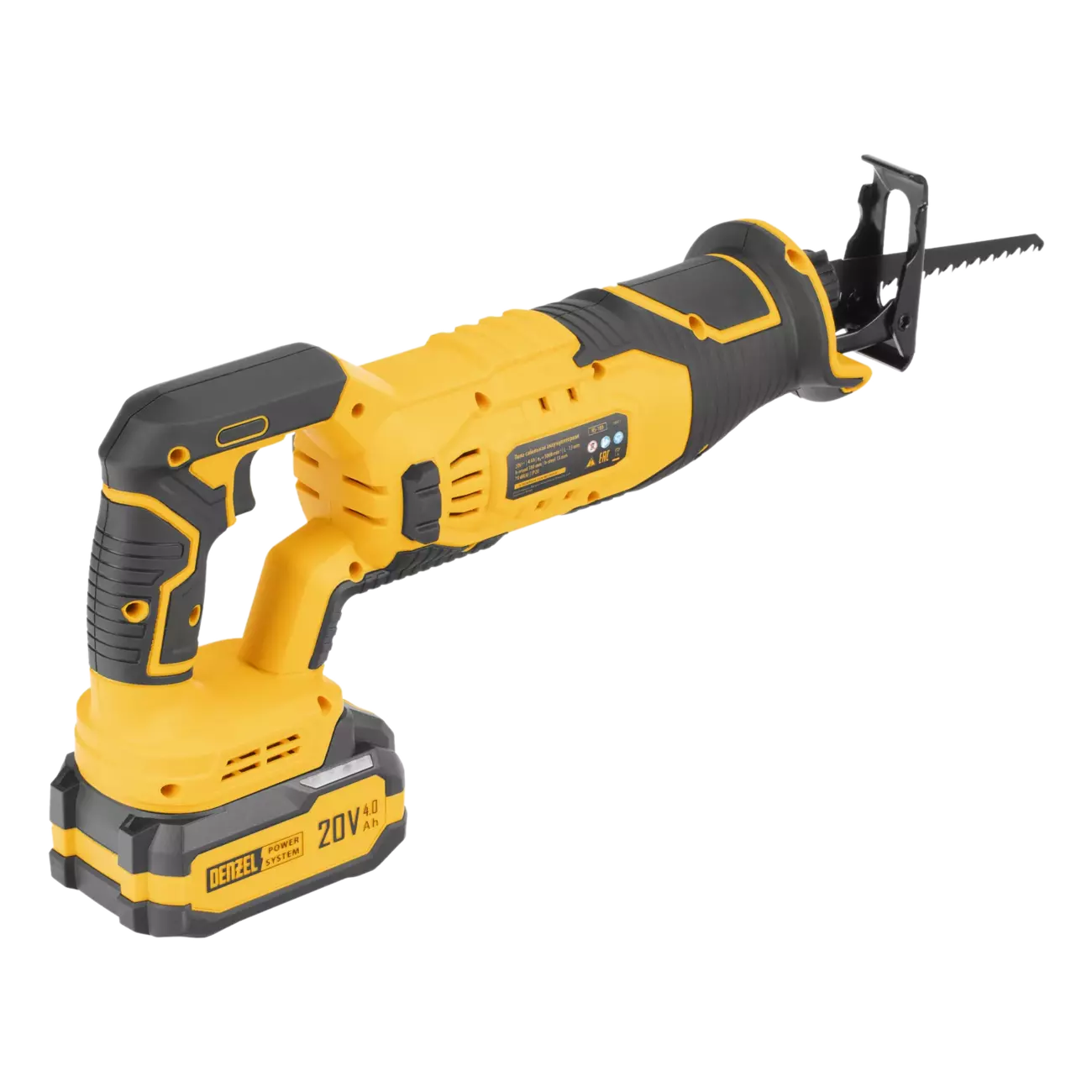 Аккумуляторная сабельная пила поставляется с аккумулятором Li-Ion 20 В емкостью 4 А·ч и предназначена для распиливания заготовок из древесины, металла и других материалов. Максимальная глубина пропила в древесине составляет 180 мм, в стали — 13 мм. У аккумулятора Li-Ion отсутствует эффект памяти, благодаря чему допускается подзарядка без риска потери емкости. Такое решение обеспечивает длительную и эффективную работу инструмента. Пила оптимальна для бытового применения.