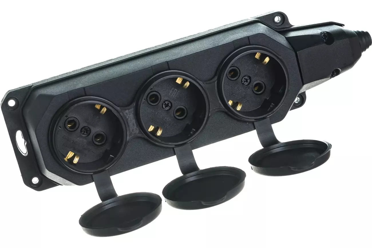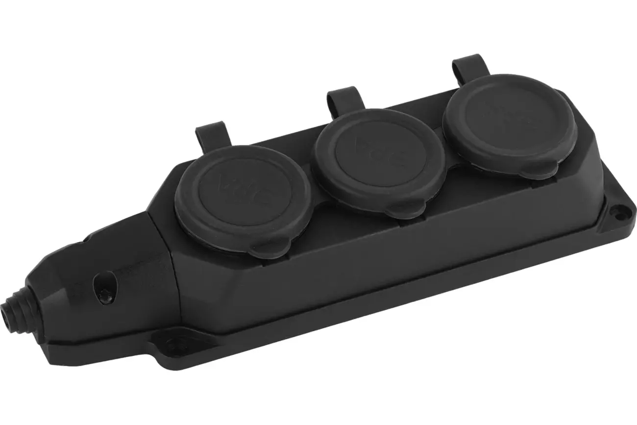 Каучуковая колодка выполнена из пыле- и влага- защищенного материала (каучук). Рассчитана на максимальную мощность 16А / 3500 Вт. Электрическая колодка подойдет для тех, кто хочет сделать удлинитель самостоятельно. Также может использоваться как накладные розеточные блоке в подсобных помещениях.