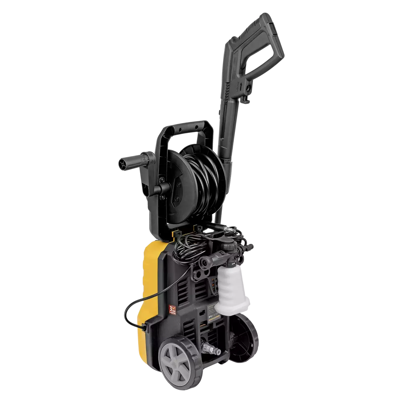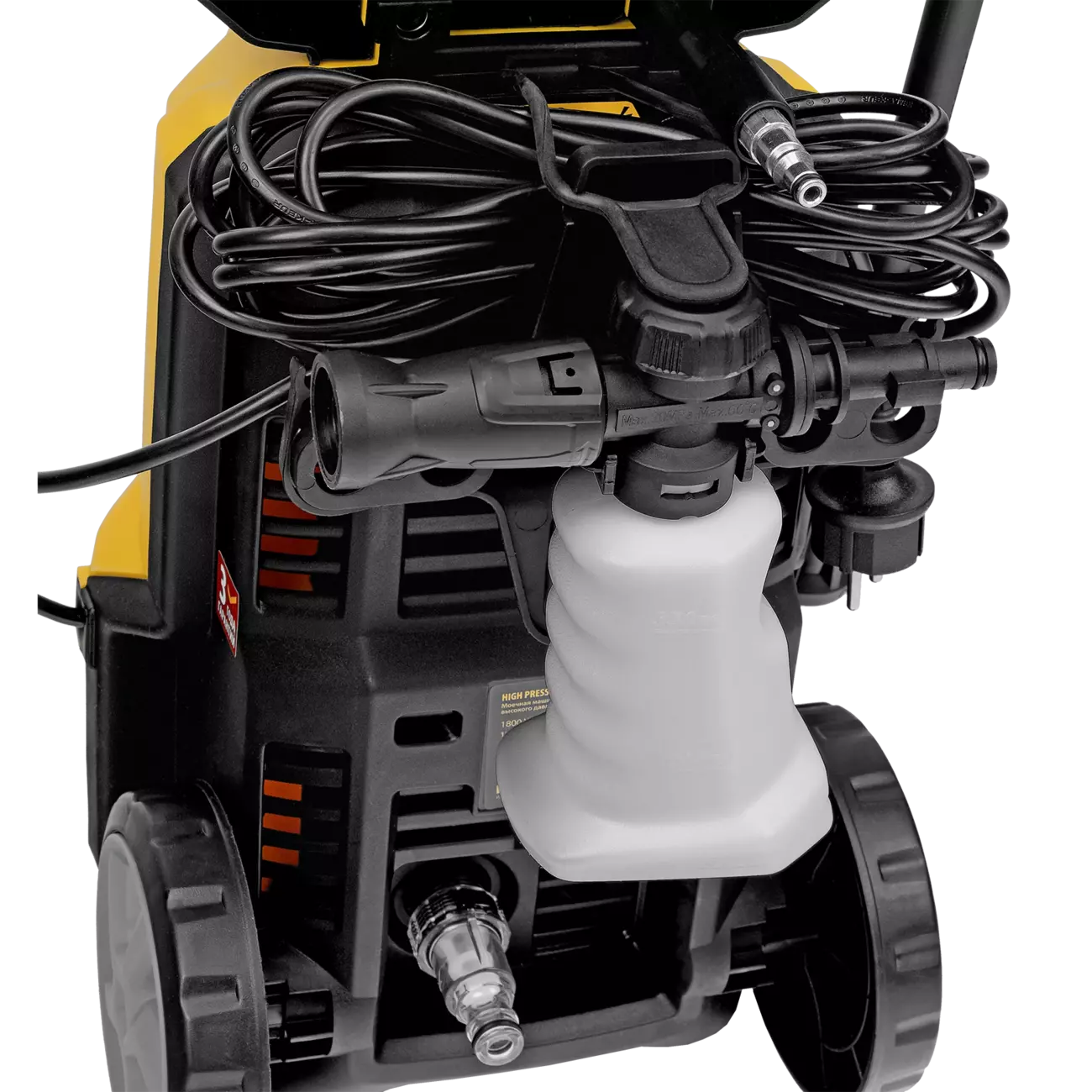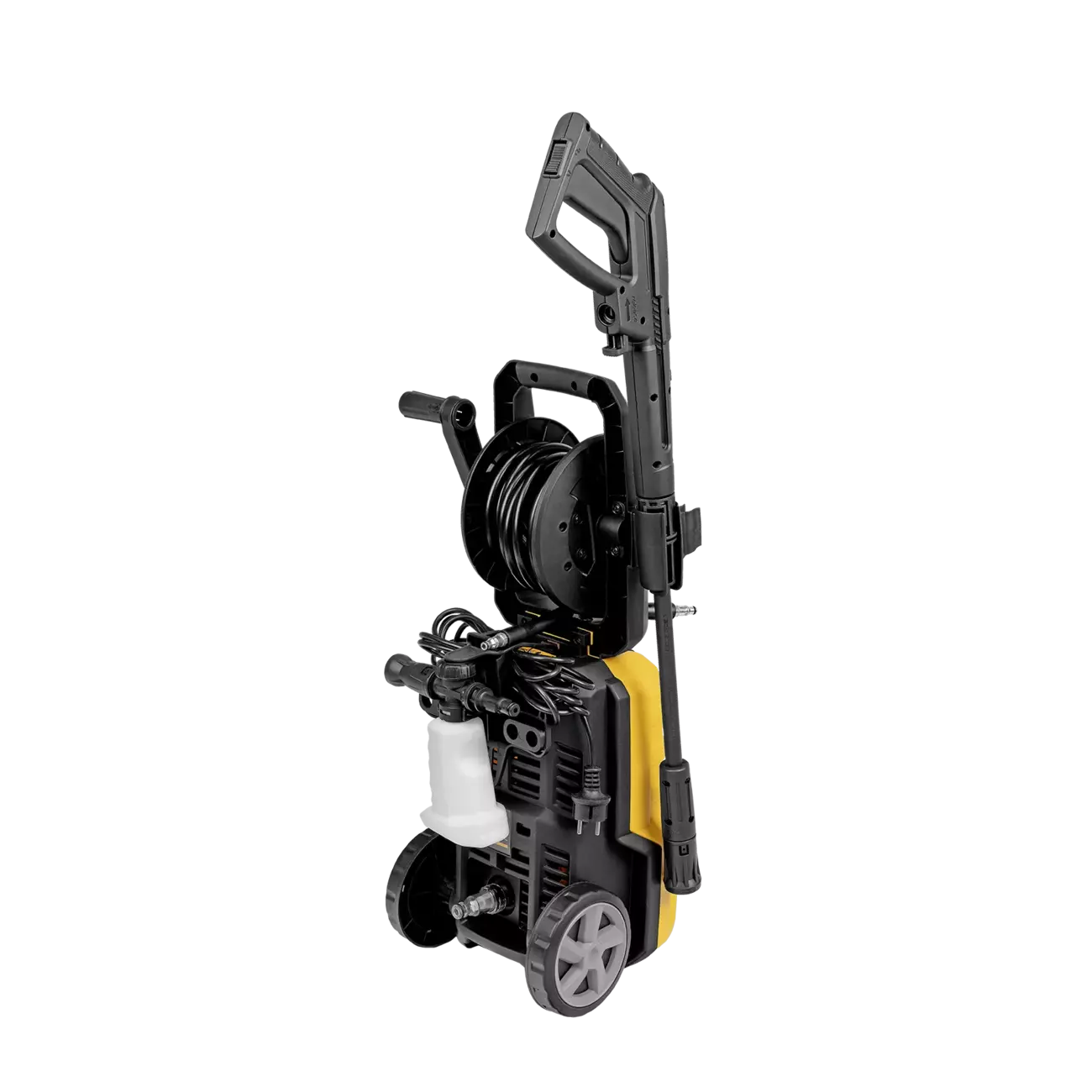 Моечная машина высокого давления с барабаном, мощностью 1800 Вт, поддерживает максимальное рабочее давление 170 бар и обеспечивает объем подачи воды 380 л/ч. Позволяет быстро и эффективно очистить садовый инвентарь, фасад дома, дорожку, отмыть автомобиль и т.д. Оснащена самовсасывающим насосом, поэтому может работать даже без подключения к водопроводу — подойдет любой резервуар или емкость с водой. Машина оптимальна для бытового использования.