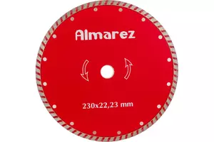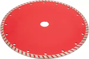 Алмазный отрезной диск предназначен для высокопроизводительной резки бетона, кирпича, тротуарной плитки, камня и других минеральных материалов. Турбосегментная структура обеспечивает быстрое и чистое резание без перегрева и сколов. Диск подходит для использования с угловыми шлифовальными машинами (болгарками) с посадочным диаметром 22.23 мм.