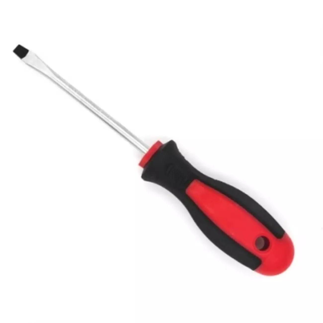 Отвертка КЕДР 6×100 мм — прочный и удобный инструмент, предназначенный для работы с крепежом с прямым шлицем. Оптимальное сочетание качества и надежности делает её отличным выбором для профессионалов и домашних мастеров. Стержень изготовлен из хром-ванадиевой стали (Cr-V), обеспечивающей высокую прочность, устойчивость к износу и коррозии. Магнитный наконечник облегчает установку и фиксацию крепежа, предотвращая его выпадение. Двухкомпонентная рукоятка с противоскользящим покрытием обеспечивает уверенный захват и комфорт даже при длительной работе. Отверстие в рукоятке позволяет удобно хранить инструмент.