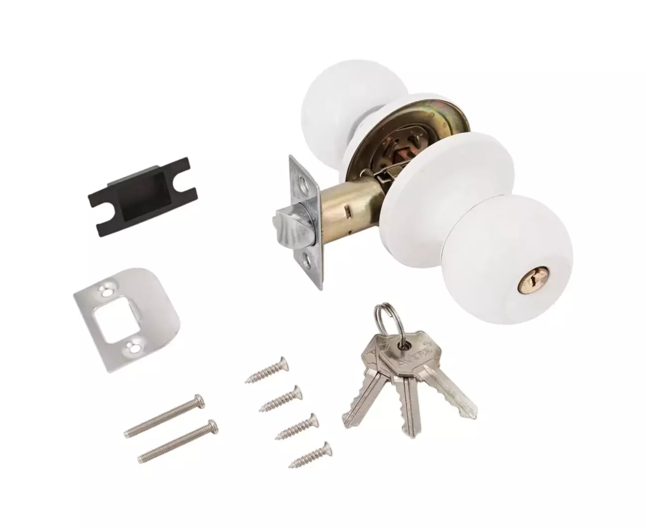 Ручка-защелка для межкомнатных дверей. Форма ручки - кнопка, круглая. Материал - сталь, гальваническое покрытие. Предназначена для дверей толщиной 35-45 мм. Регулируемое расстояние от края двери до оси ручек 60-70 мм. Скругленная защелка для комфортного закрывания, размерами 19х14 мм с вылетом 11 мм. Габариты корпуса врезной защелки 91х22х20 мм. В комплекте 3 ключа.