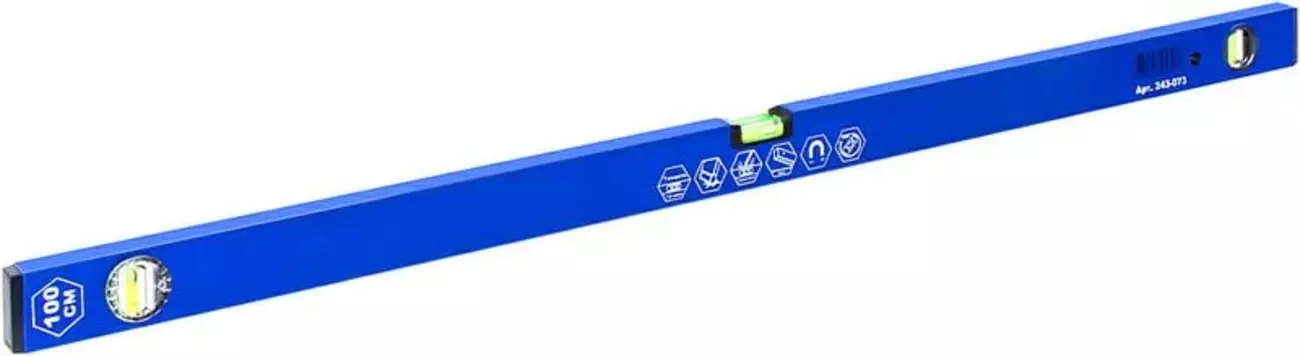 Строительный уровень представляет собой ручной инструмент для откладывания углов, проведения замеров и разметки, а также выявления отклонения на плоскости. Изделие изготовлено из качественного материала с фрезерованной гранью. Уровень оснащен тремя глазками (один поворотный) и магнитной вставкой.