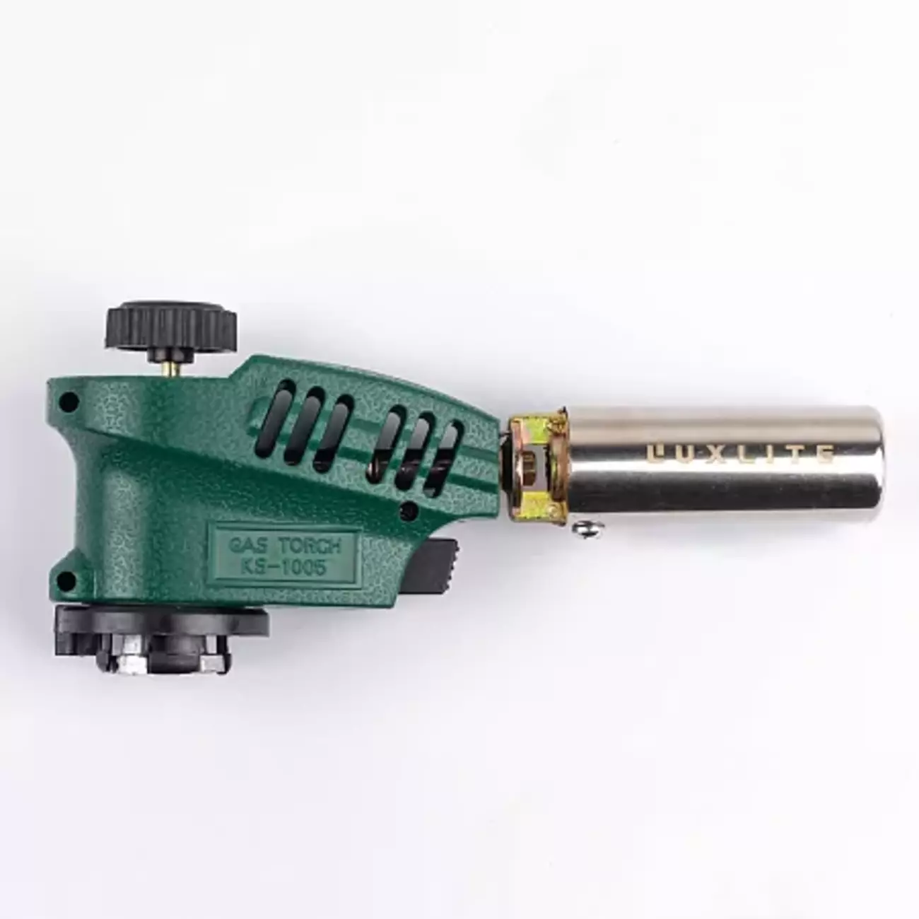 Газовая горелка с пьезоподжигом 1005 GREEN. Устанавливается на стандартный газовый туристический баллон, соединение - цанговое. Эргономичная форма обеспечивает удобство в использовании, а регулятор подачи газа позволяет установить максимально удобный для работы уровень пламени. Горелка пригодится и в быту, для мелких работ, и на природе - в походе или на пикнике. Позволяет с легкостью разжечь костер или мангал.