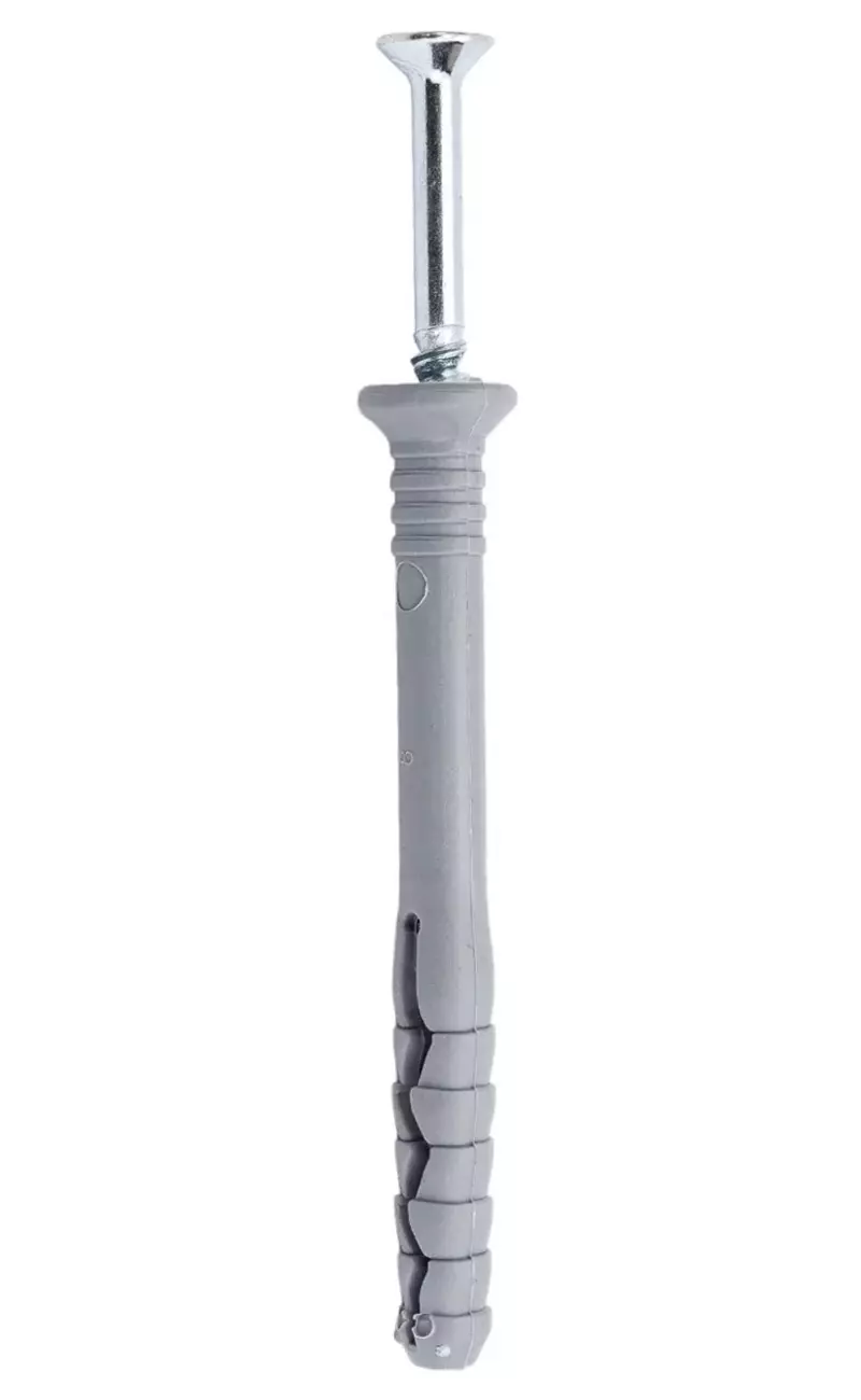 Этот дюбель используется для крепления легких и средних конструкций, таких как полки, карнизы или легкие перегородки. Он подходит для монтажа в бетон, кирпич и другие строительные материалы.