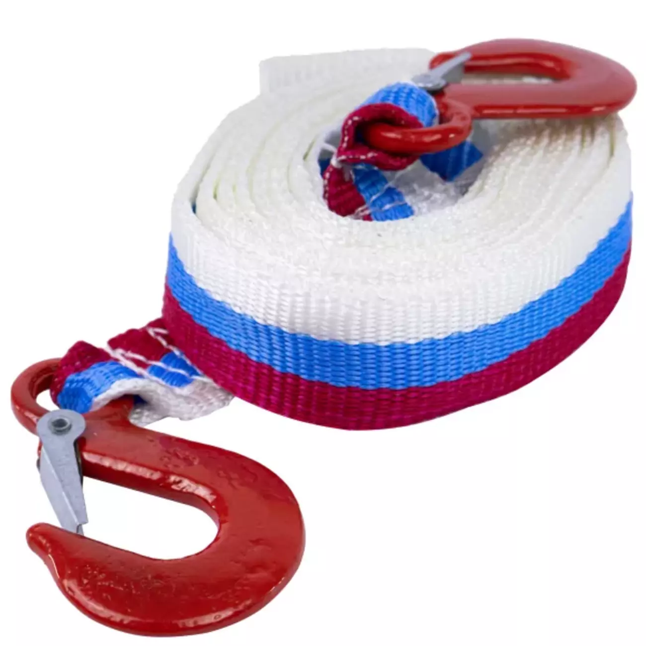 Трос буксировочный Pobedit с 2 крюками, в пакете, длина ленты 5 метров +/- 0,5м, лента ПП 45мм. Изготовлен из высокопрочной полипропиленовой мультифиламентной нити (лента), крюки - сталь с порошковым покрытием. Предназначен для буксировки легковых автомобилей. Не является рывковым тросом.